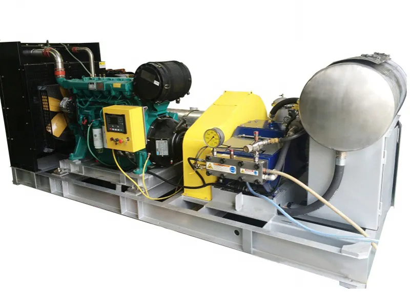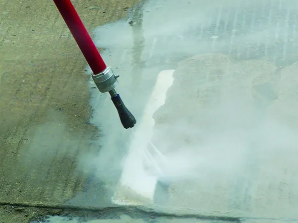 Данная установка использует струю воды высокой скорости для удаления загрязнений и различных отложений с поверхности материалов. В качестве рабочей среды применяется обычная вода, а для создания давления потока до 4000 psi (280 МПа) оборудование оснащается электродвигателем или дизельным приводом. Через одну или несколько сапфировых форсунок вода распыляется под различными углами и с разной силой, создавая множественные вихревые струи, эффективно очищающие поверхность объекта и удаляющие загрязнения или засоры в других элементах оборудования.